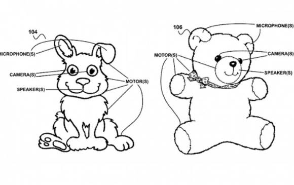 En un boceto publicado por la Oficina de Patentes de Estados Unidos, se puede ver lo que parecen ser conejos y osos de peluche con micrófonos integrados en las orejas, cámaras en los ojos, altavoces en la boca y motores en el cuello.