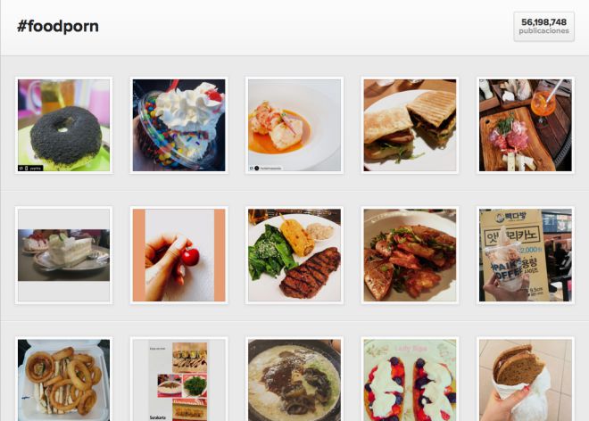 Junto al hashtag #foodporn se han publicado, a día de hoy, más de 56 millones de imágenes en Instagram. Claramente, la comida es el elemento preferido de esta red social. Sobre todo si es colorida, esponjosa y tiene una presentación original; es decir: si es hipercalórica. En Instagram no hay cabida para las acelgas rehogadas ni las ensaladas mixtas porque todo el espacio lo ocupan las hamburguesas de muchos centímetros de grosor, los cupcakes con bien de colorante o las salsas multicolor.